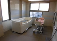 ベッド型のストレッチャーに寝たまま入浴できます。全身が温まり、清潔を保てます。 |