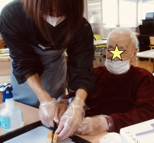 お茶の時間には、その場で出来立てのモンブランを召し上がっていただき、「甘くて美味しいね」「カフェみたいだ」と、皆様の美味しい笑顔が満開になりました。