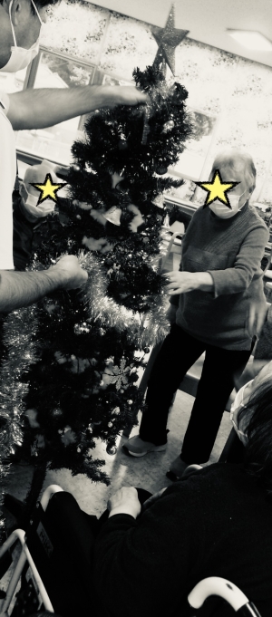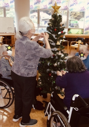 クリスマスツリーの飾り付けは、実は立派な機能訓練の機会です。