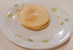 生地ができあがったら、いよいよ焼きの工程です。 ホットプレートに、ちょうど良いサイズ(約7cm!)になるよう、慎重に生地を流し入れます。