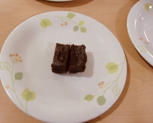 いよいよ、お待ちかねの実食タイムです! しっとりと焼き上がった濃厚なチョコブラウニーを前に、皆様の表情もパッと明るくなりました。